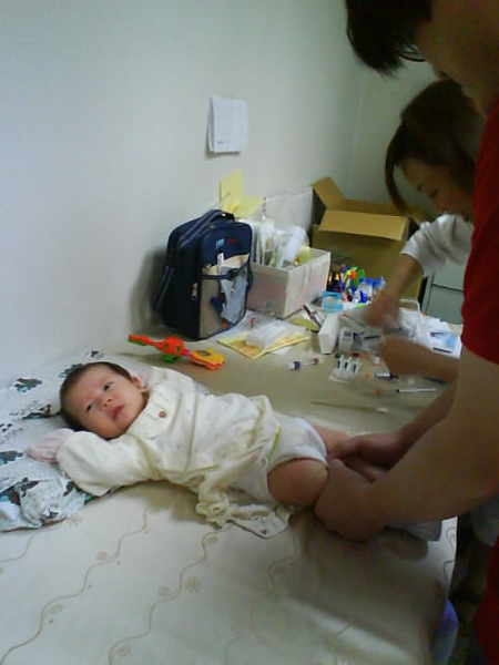 迎接小猴子的是超多預防針等著挨XD