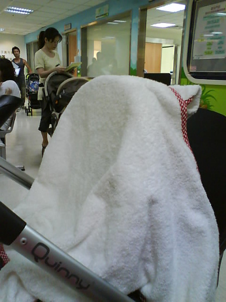 現在已經習慣性的會多帶一件小被被給陳小猴蓋,或是拿來遮掩@@