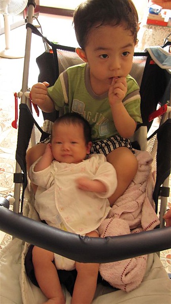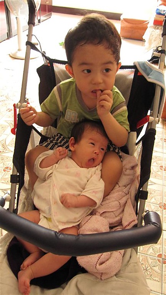 (原本是打算讓藍哺哺跟陳小猴一起躺在推車上and抱抱的XD)